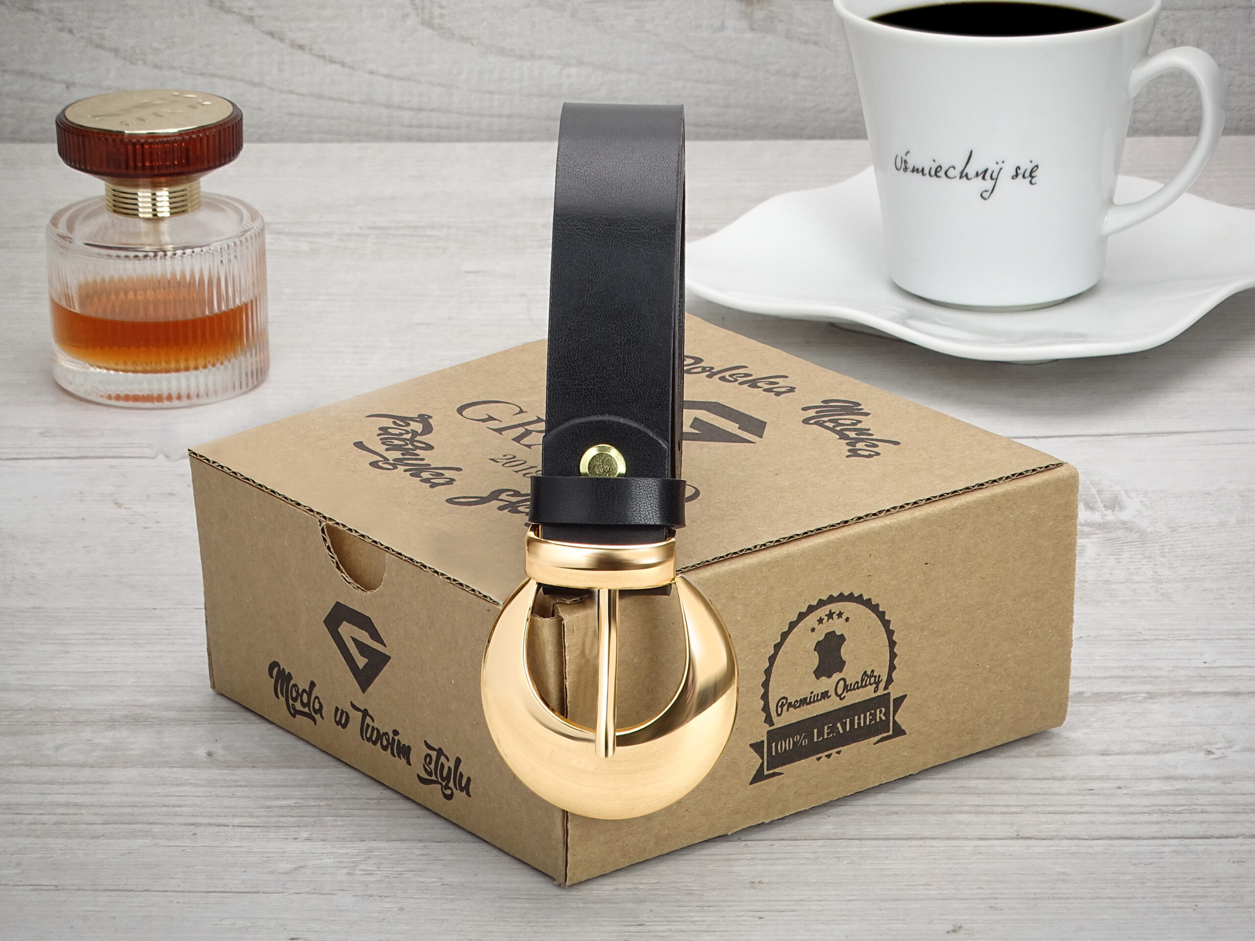 Skórzany damski pasek z metalową klamrą, która pasuje do wszystkich szlufek spodni, może również stanowić dopełnienie sukienki, tuniki lub swetra, jako stylowy dodatek podkreślający talię. INNOWACYJNE WZORNICTWO, dodają klamrze charakteru Rodzaj i jakość zastosowanej klamry gwarantuje niezwykłą wygodę zapinania i noszenia paska.. W budowie paska pierwsze skrzypce gra jednak PIEKNA klamra w kolorze złotym, a ta stworzona jest z najlepszych materiałów, są za tym gwarancją wysokiej jakości. Oprócz tego sprzączka jest fajnym dodatkiem biżuteryjnym